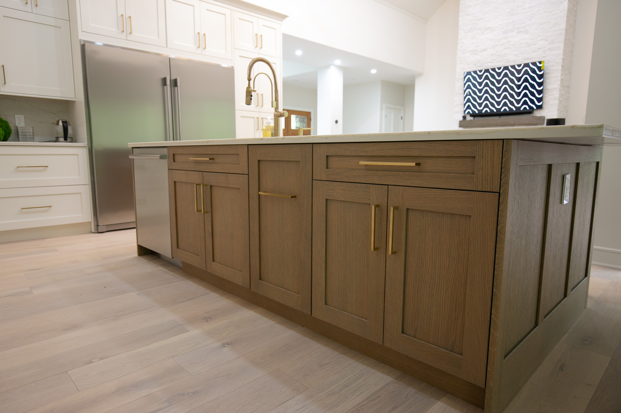 For homeowners who want something more natural and contemporary, rift white oak cabinetry offers a subtle grain pattern and understated elegance. The linear texture of rift-cut oak pairs beautifully with quartz countertops, brushed brass hardware, and open layouts. This combination results in kitchens that feel warm yet sophisticated, making rift oak one of the most sought-after finishes in 2025. It is a perfect choice for those who want modern luxury with a touch of organic style.
