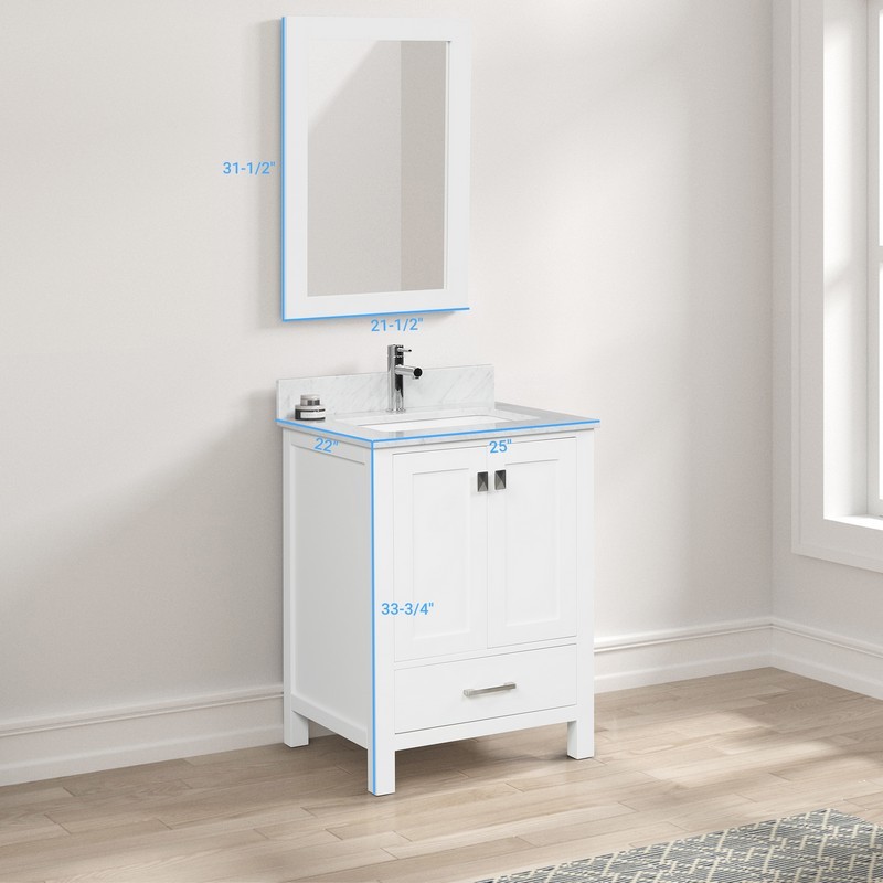 Blossom 026 24 01 CT M Geneva 25 Inch Freestanding Bathroom Vanity with Countertop and Mirror, Matte White