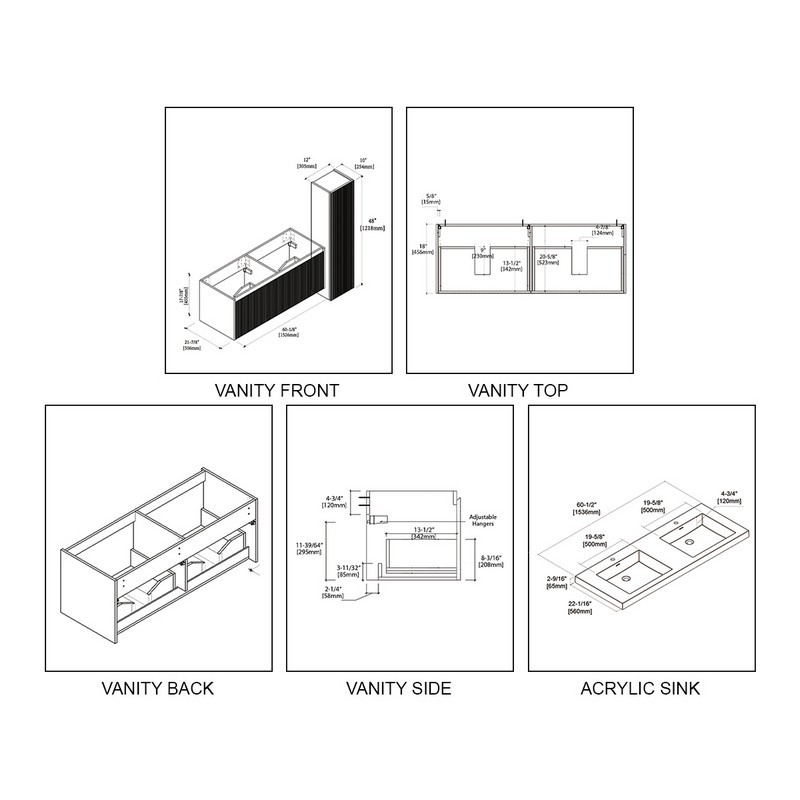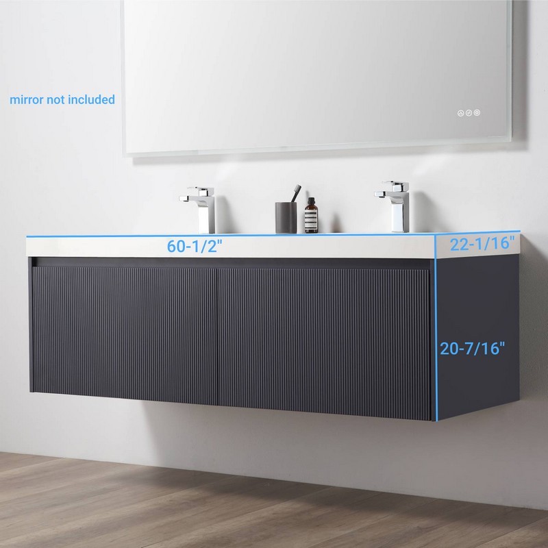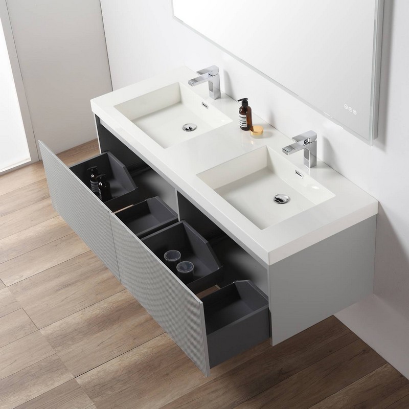 Blossom 028 60 A Positano 60 1/2 Inch Floating Bathroom Vanity with Countertop