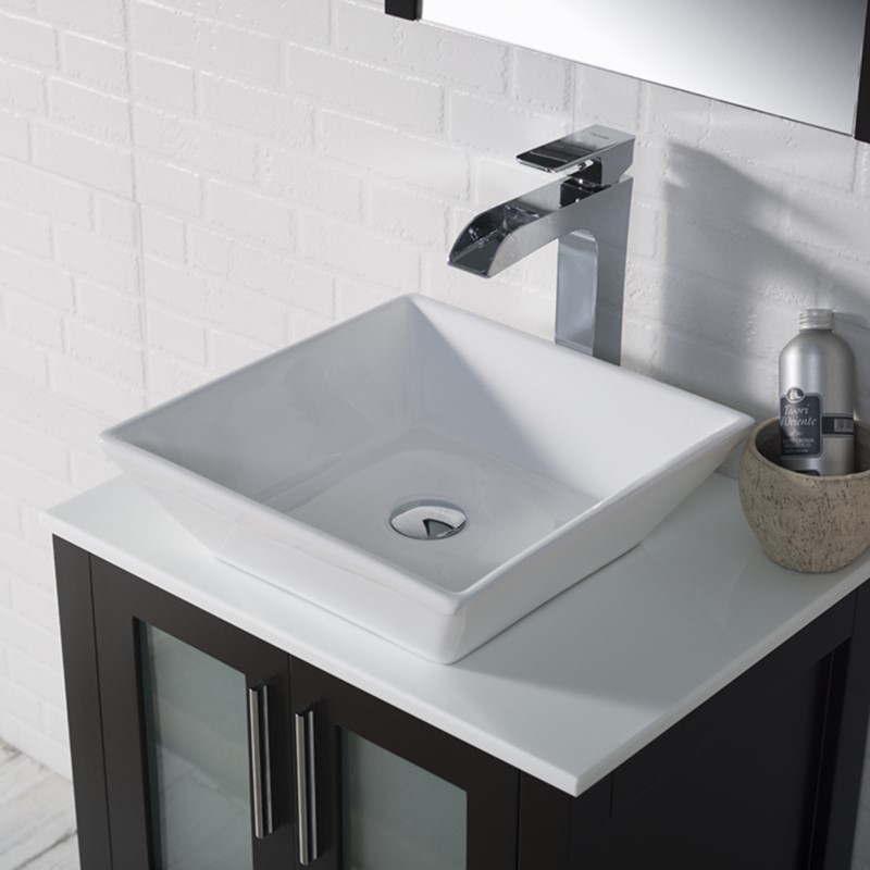 Ceramic Vessel Basin: 16 1/8 Inch (W) x 16 1/8 Inch (D) x 4 3/4 Inch (H)