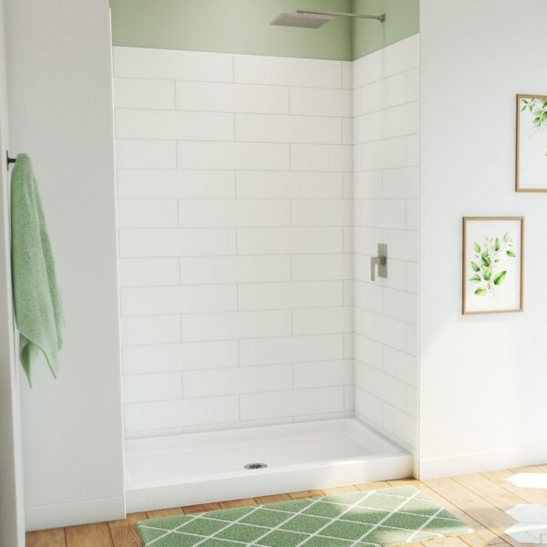 The DreamStone collection offers popular horizontal subway pattern walls with an authentic solid surface shower base. The durable, non-porous surface material makes DreamStone walls and bases resistant against mold, chips, and cracks. The solid color runs completely throughout the material for long-lasting durability and easy maintenance. The pebbled texture of the base provides a slip-resistant surface for added safety. Enhance your bathroom space with DreamStone for a pristine and timeless aesthetic.