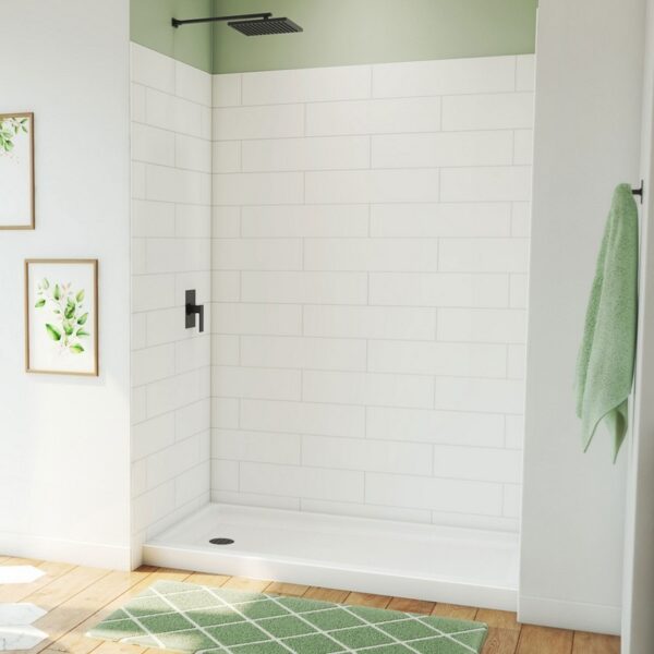 The DreamStone collection offers popular horizontal subway pattern walls with an authentic solid surface shower base. The durable, non-porous surface material makes DreamStone walls and bases resistant against mold, chips, and cracks. The solid color runs completely throughout the material for long-lasting durability and easy maintenance. The pebbled texture of the base provides a slip-resistant surface for added safety. Enhance your bathroom space with DreamStone for a pristine and timeless aesthetic.