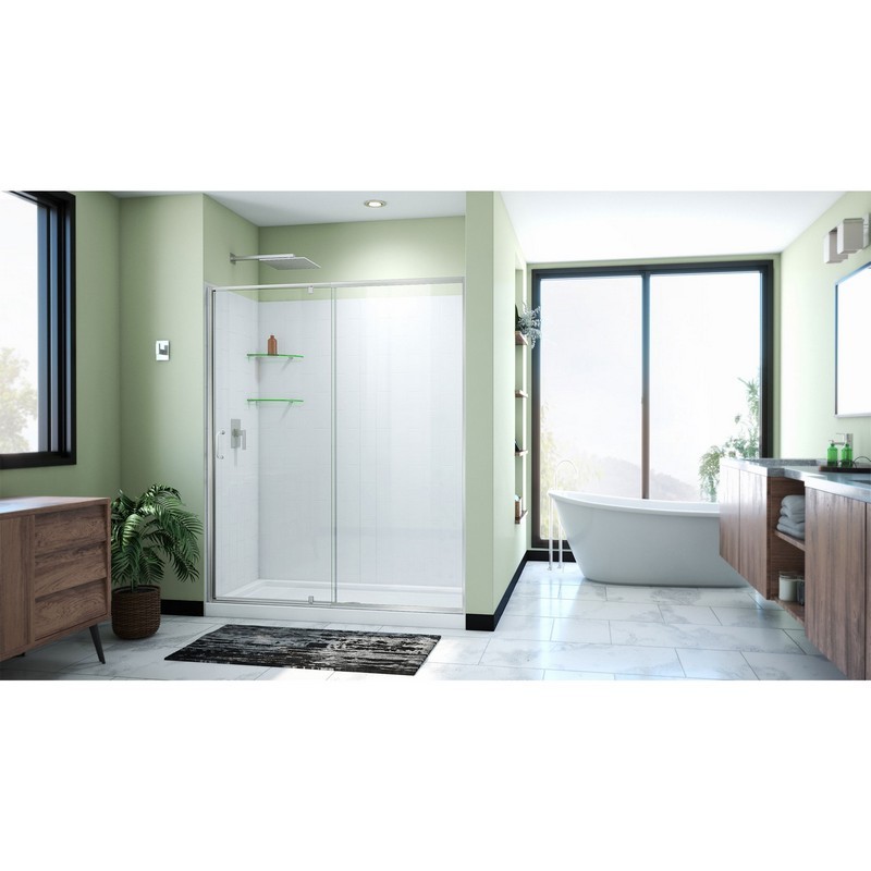 When thinking of versatility, look no further than the DreamLine Flex. This forgiving model offers substantial adjustment with its state-of-the-art telescopic rails and stands out as the leader in adapting to any bathroom space. Enjoy easy installation and assurance of quality with this high-end, semi-frameless design that is completed with a durable magnetic strip for a watertight seal. The Flex sits on the perfectly paired SlimLine shower base and is surrounded by a chic vertical subway pattern acrylic wall kit. Leave no stone unturned with the complete solution to an easy bathroom remodel.