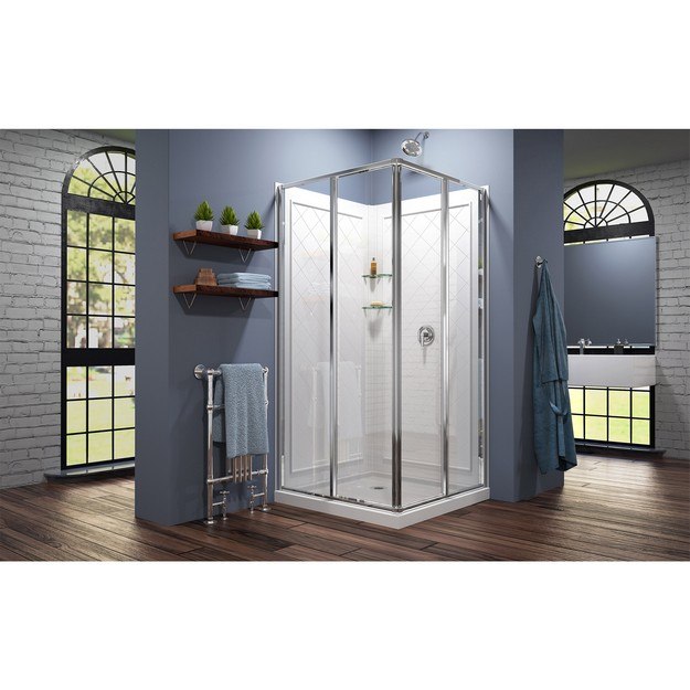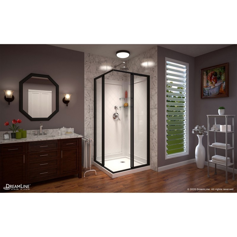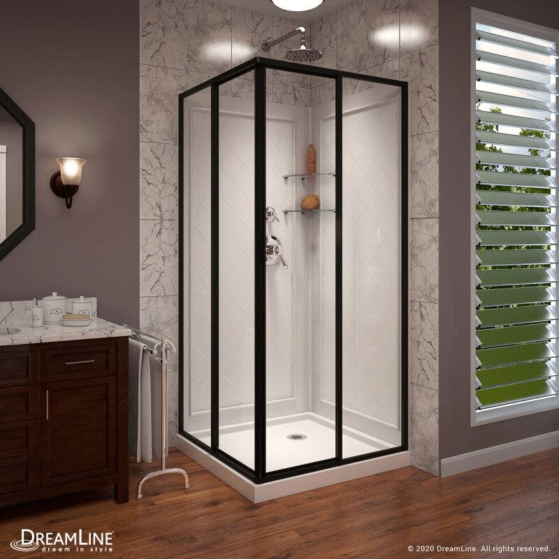 Dreamline DL-6150 Cornerview 36 D x 36 W x 76 3/4 H Framed Sliding Shower Enclosure, Shower Base and QWALL-4 Acrylic Backwall Kit