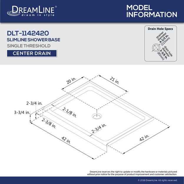 Drain Location: Center (Centered on width only; See technical drawing for exact location)