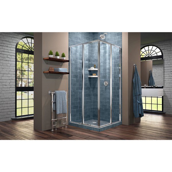 The DreamLine Cornerview sliding shower enclosure provides a modern solution to maximize space with a corner installation and center opening design. The Cornerview has a straight edged style that provides a comfortable showering space. The Cornerview can fit into virtually any corner, making it perfect for smaller bathrooms. Instantly upgrade the look and feel of your bath space with the Cornerview sliding shower enclosure. Choose DreamLine for the ultimate solution for your shower project.