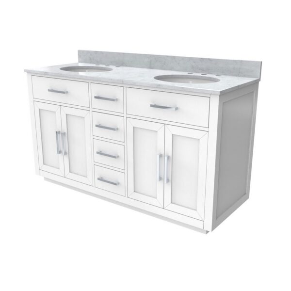 Dreamline VFDX602234RWM Dexterity 60 Inch Oval Undermount Double Sinks Oak Vanity with White Carrera Marble Top