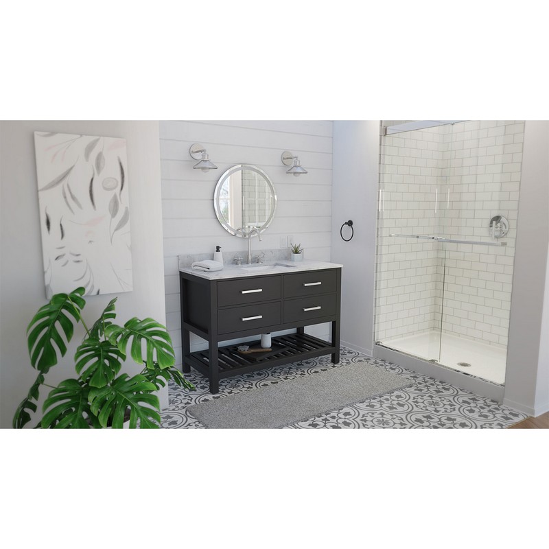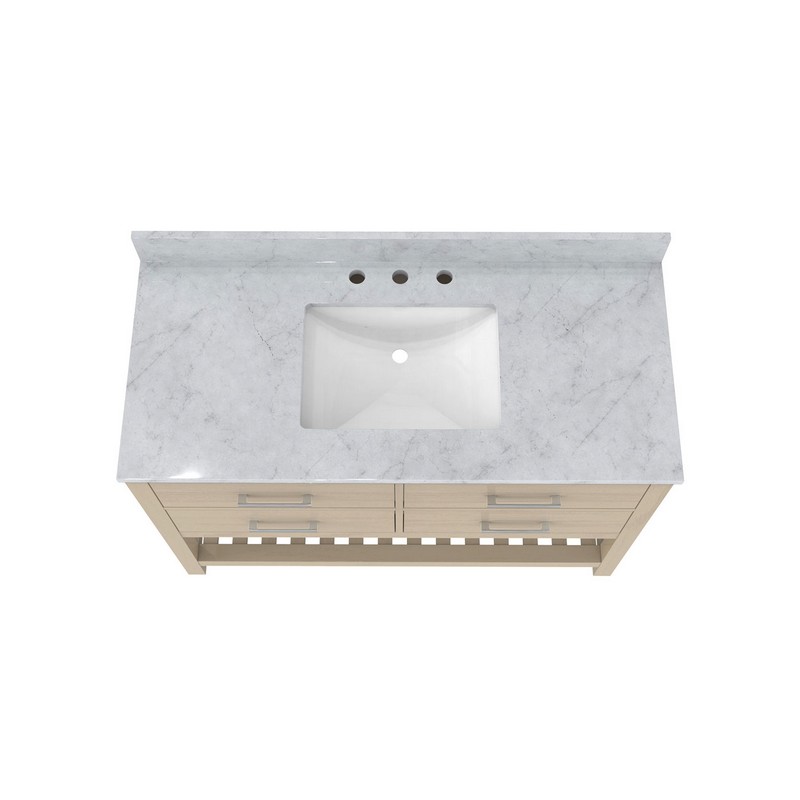 Dreamline VFVC482234SWM Valencia 48 Inch Rectangular Undermount Single Sink Oak Console Vanity with White Carrera Marble Top