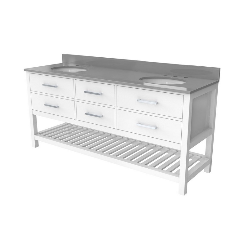 Dreamline VFVC722234RGQ Valencia 72 Inch Oval Undermount Double Sinks Oak Bathroom Vanity with Gray Quartz Top