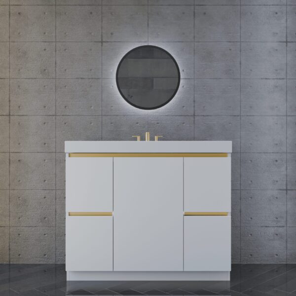 Built using moisture-resistant materials, the Axis vanity is engineered for long-lasting performance in humid bathroom environments. Its wide range of available sizes — from 24″ to 60″ — makes it a versatile choice for powder rooms, guest bathrooms, and primary suites alike.