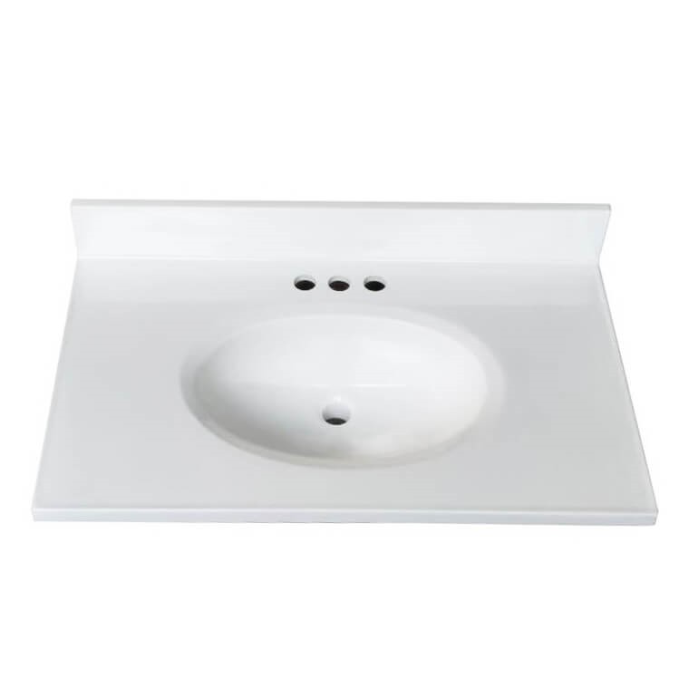 Overview: Fine Fixtures MT3122 31 Inch Three Hole Rectangular Cultured Marble Vanity Sink