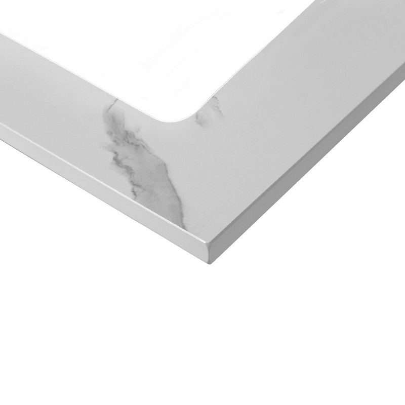 A genuine slab of Sintered Stone Carrara lends a white glove appeal to those that seek original stone as a stationary feature to any powder room. Durable to accommodate hot and cold elements, the entire surface is non-porous and includes signature crafting of single sink cutouts.