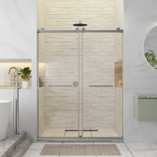 Overview: Fine Fixtures SDM48 48 1/4 Inch Double Sliding Frameless Shower Door