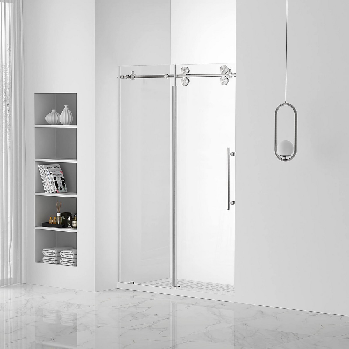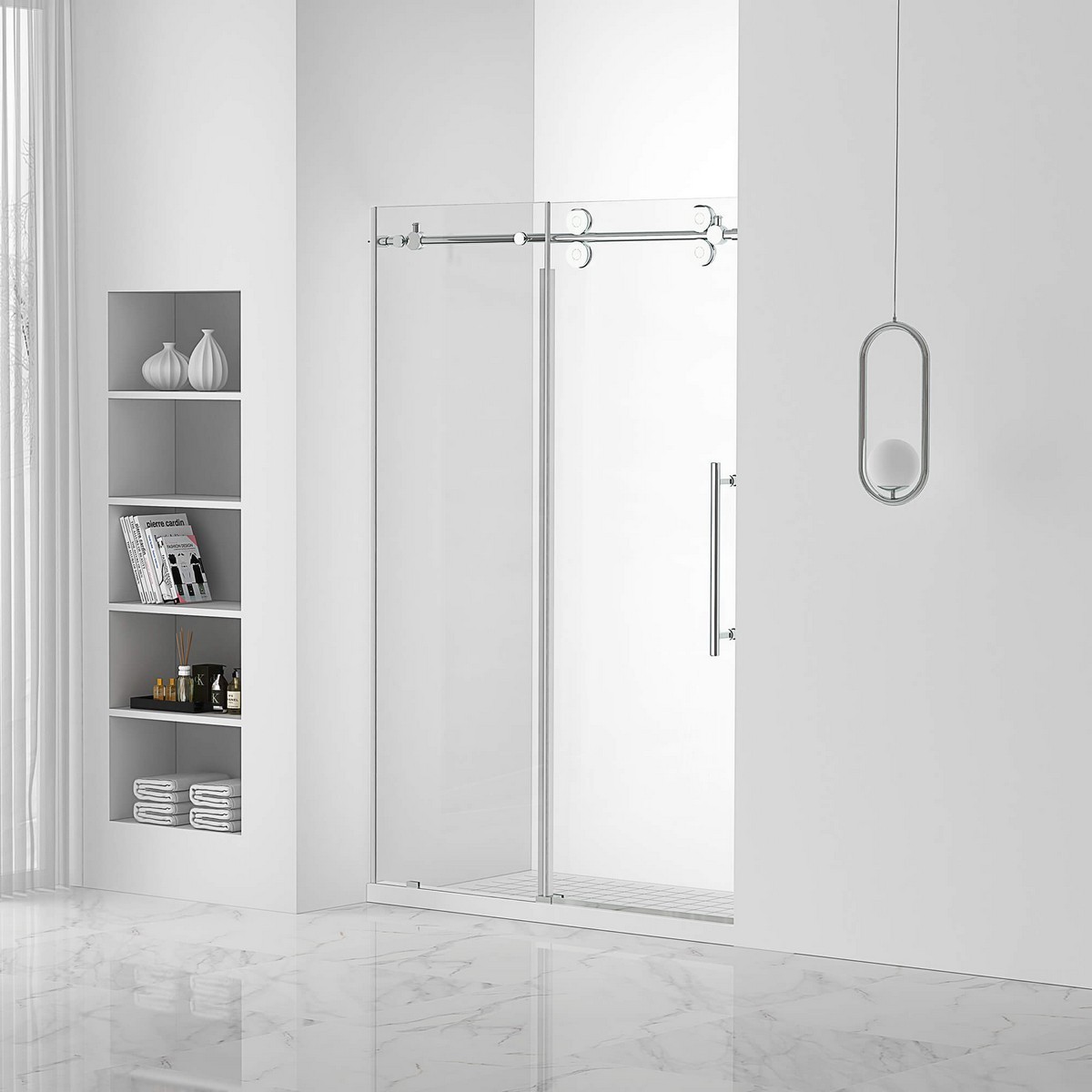 Overview: Fine Fixtures SDA48 48 1/4 Inch Sliding Frameless Shower Door