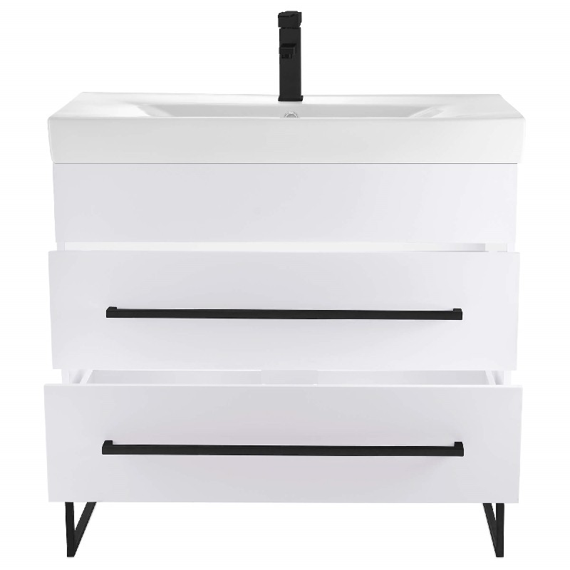 Concordia is slim and chic at its best, even in its 36 Inch double drawer orientation. We’ve perfected the vanity with great attention to space, detail and simplicity, effectively embodying the minimal style profile, while showcasing effective design from a barely there standpoint. Hardware and legs have been sourced to coordinate via slim structure and heavy hold, maximizing durability in its most slender of elements. We love the artsy vibe that utilizes space, while conforming to just about any powder room layout.