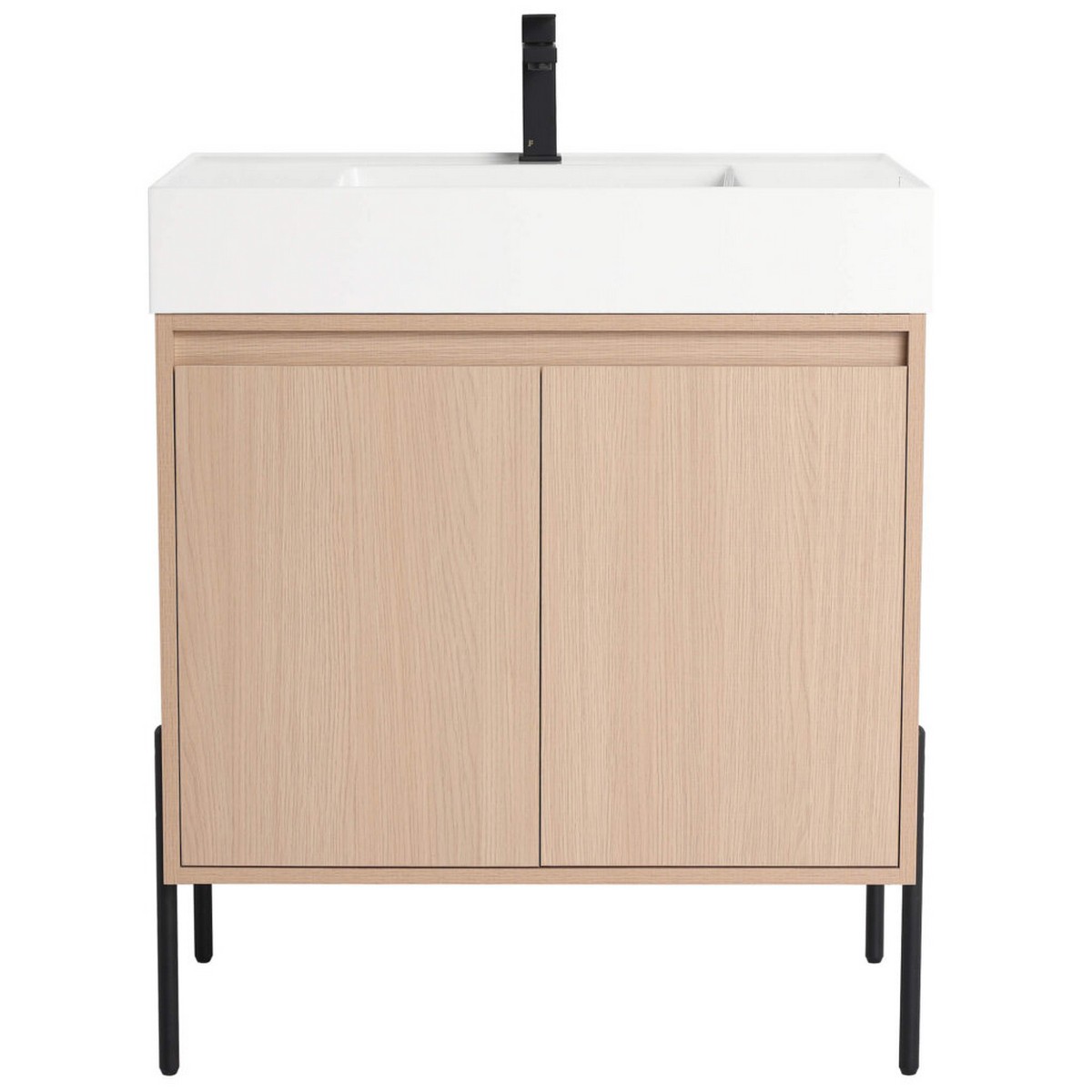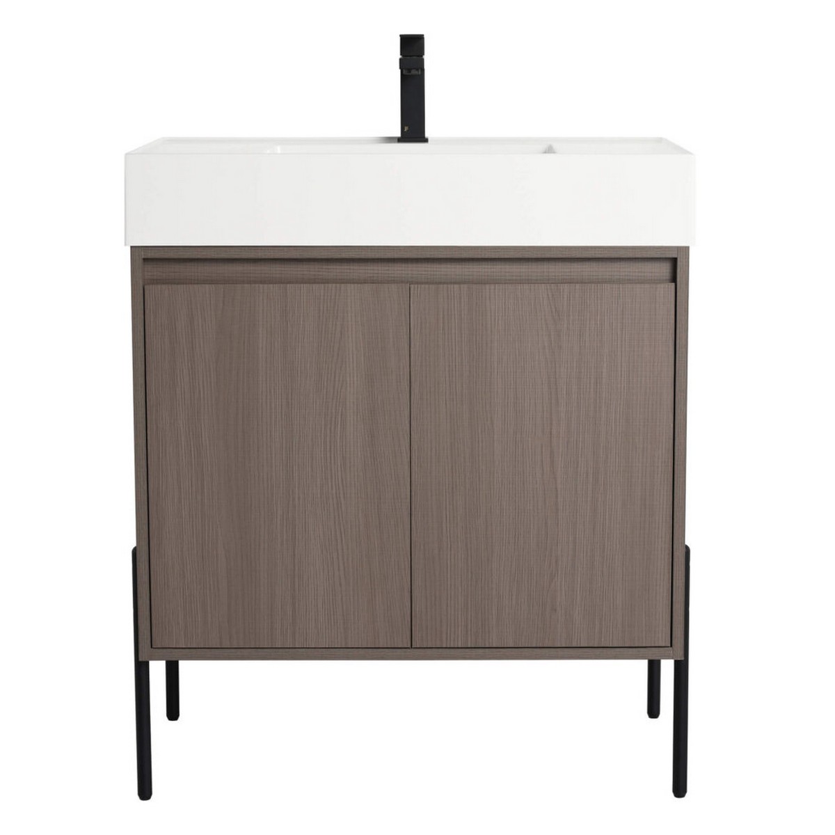 The CROWNPOINT Vanity Collection embodies sleek modern design with a minimalist profile, crafted to fit seamlessly into any contemporary space. It features clean lines and a stylish, elevated design that enhances the aesthetics of any bathroom. With a focus on function, this vanity offers an organized storage solution concealed behind sleek, handle-free cabinet doors. Supported by sturdy legs, it is designed for easy maintenance and durability. The collection’s sophisticated design makes it a perfect addition to modern bathroom spaces, balancing style and practicality.
