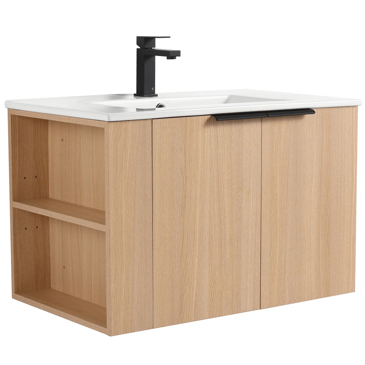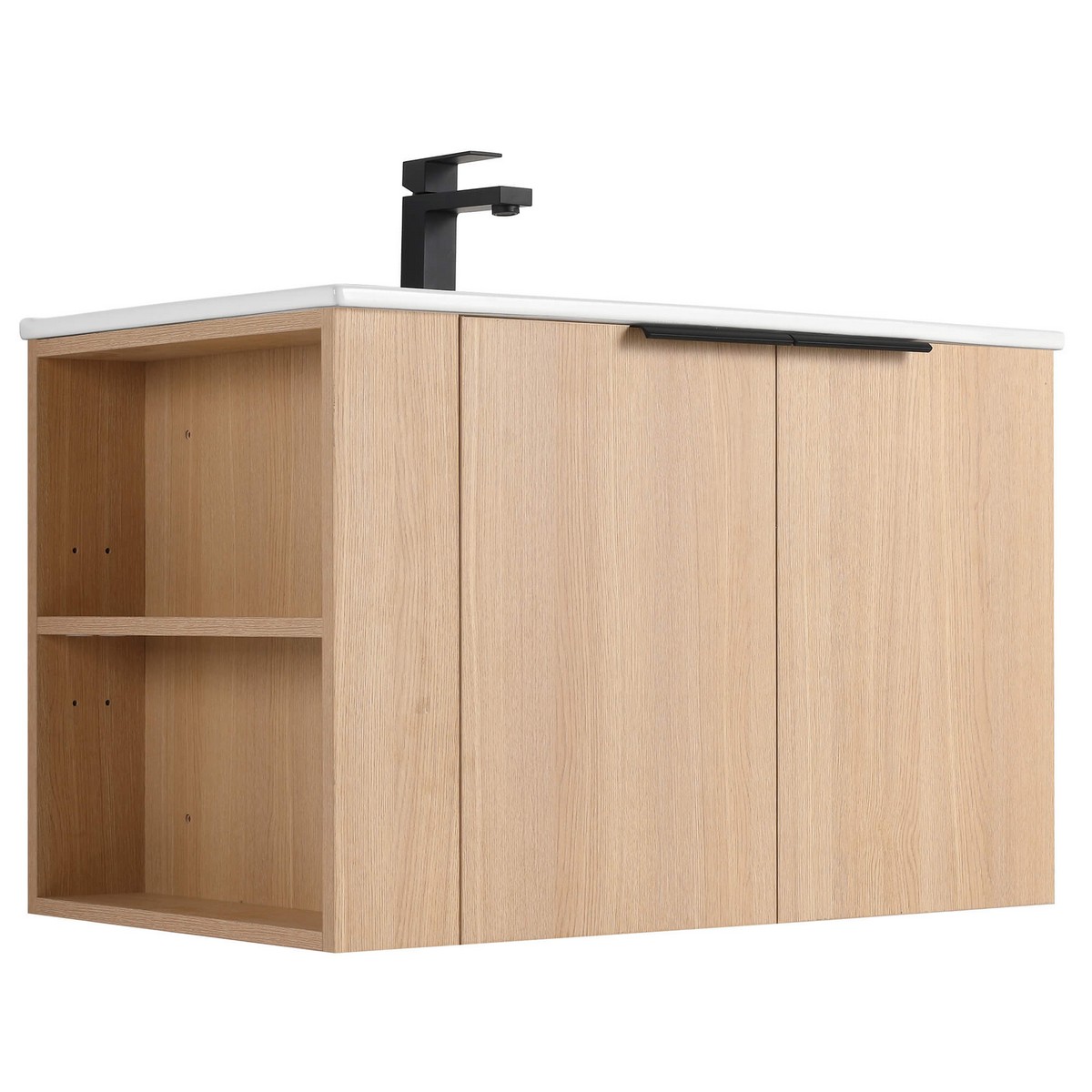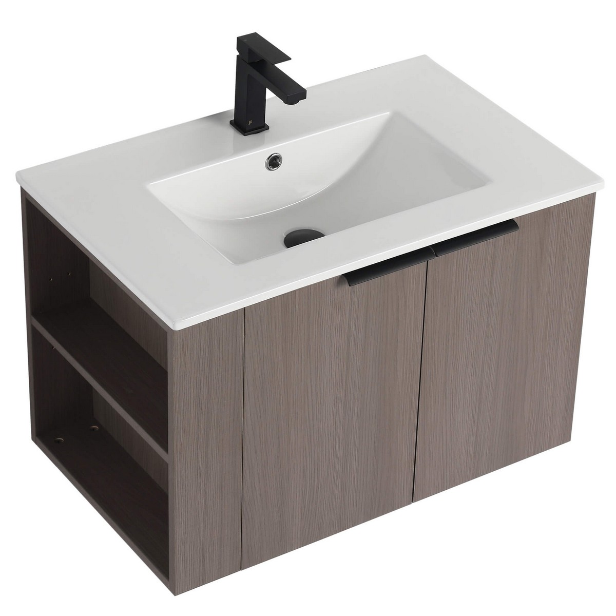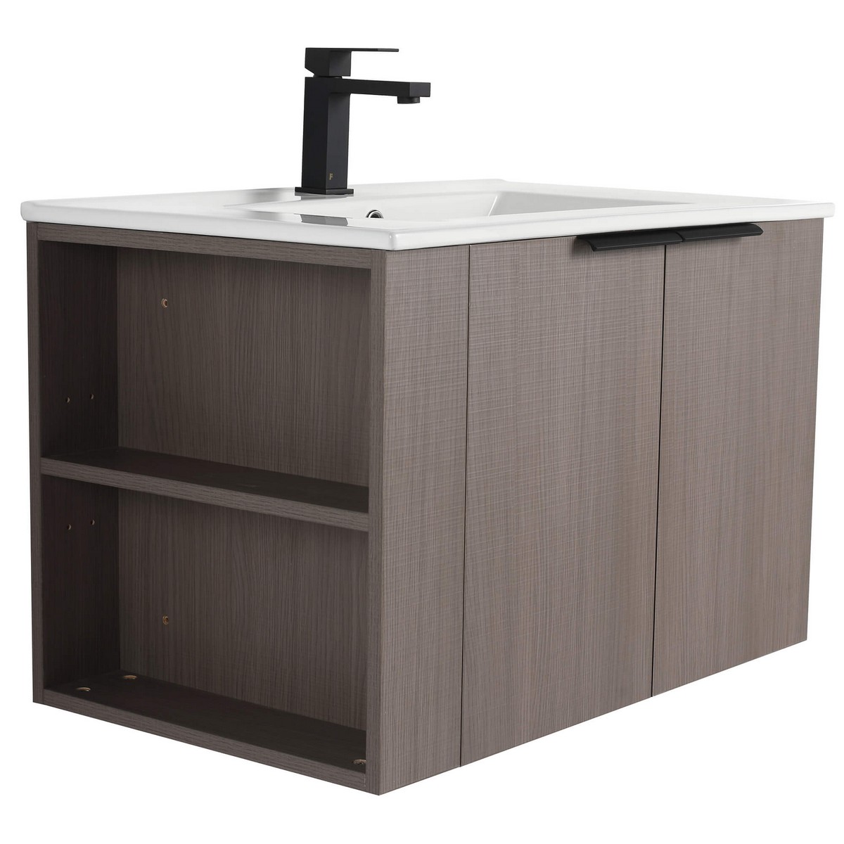 The ELMRIDGE vanity collection combines functionality with modern design, making it a perfect addition to any bathroom space. Featuring a compact design with a built-in storage cabinet and open shelving, this vanity offers ample space for organizing essentials. Its sleek design and thoughtful details are ideal for both small and large bathrooms, creating a streamlined and stylish look while maximizing storage options. The collection is designed with a focus on durability and ease of maintenance, making it a long-lasting and practical choice for your home.