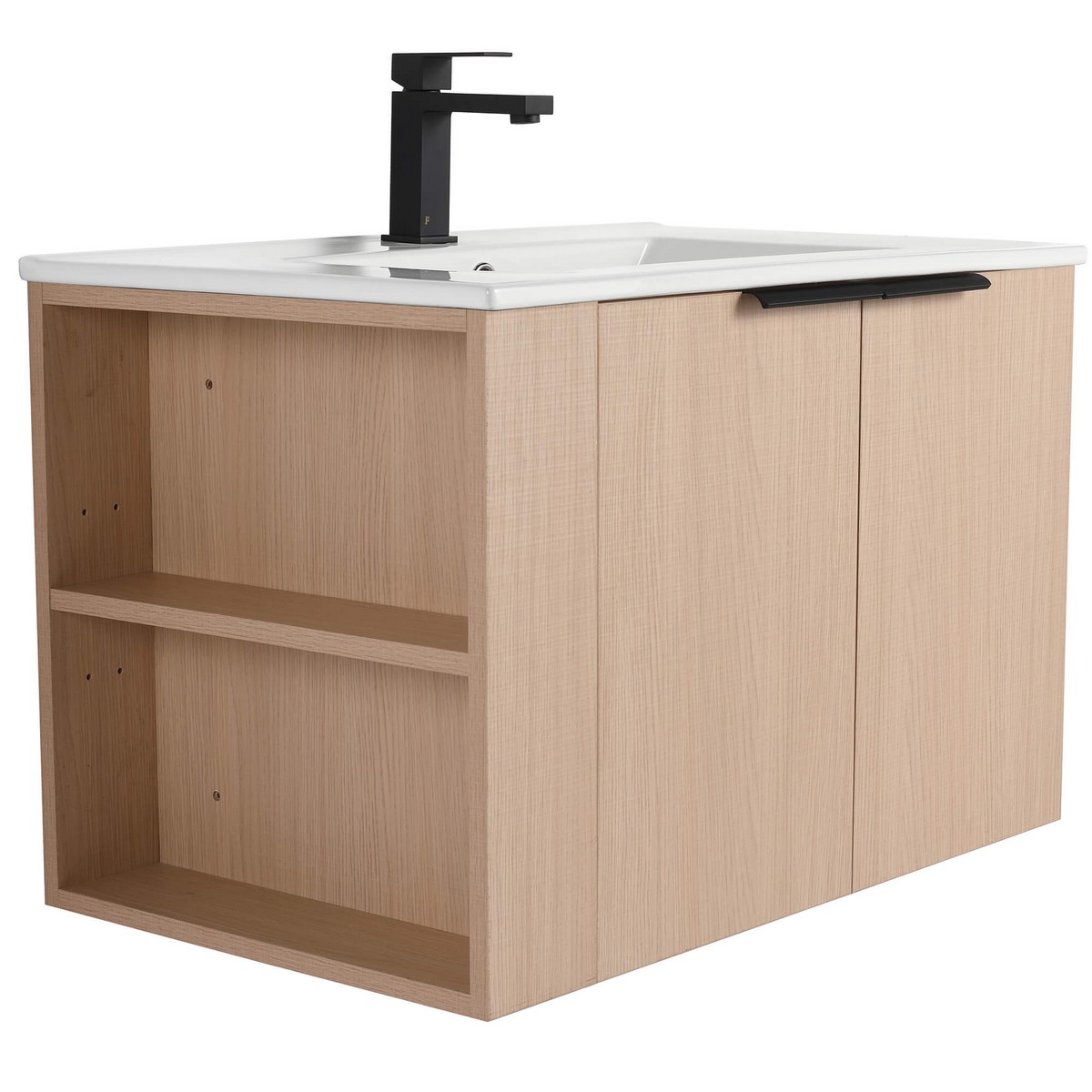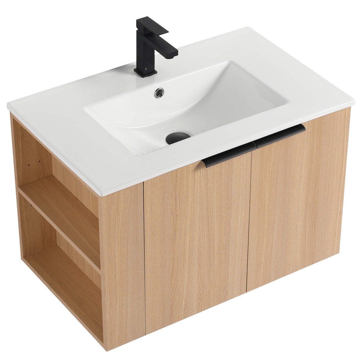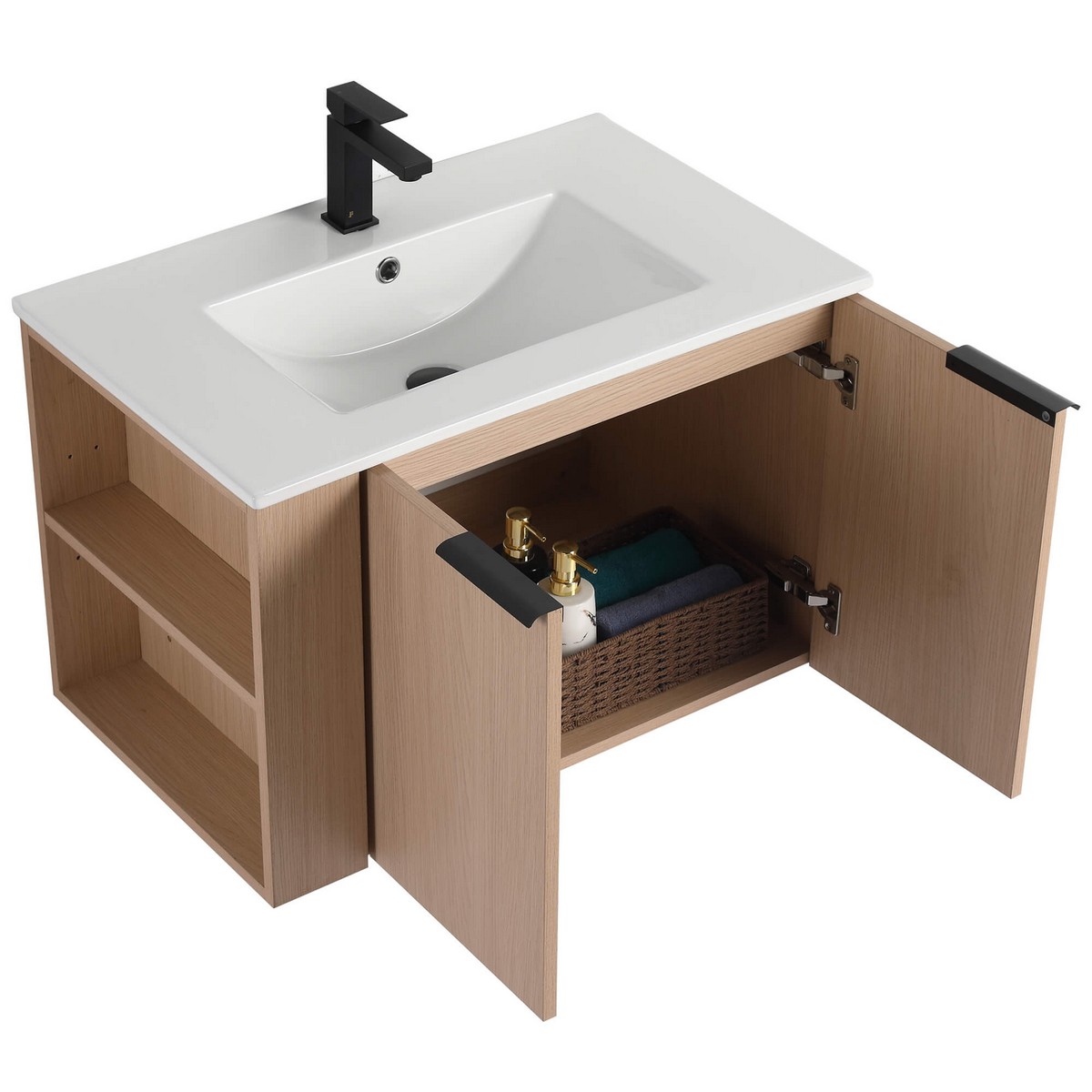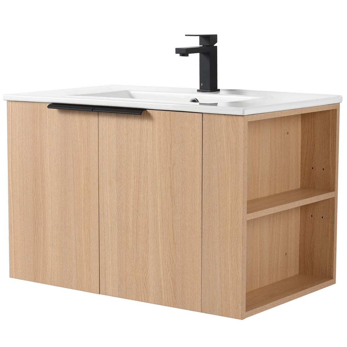 The ELMRIDGE vanity collection combines functionality with modern design, making it a perfect addition to any bathroom space. Featuring a compact design with a built-in storage cabinet and open shelving, this vanity offers ample space for organizing essentials. Its sleek design and thoughtful details are ideal for both small and large bathrooms, creating a streamlined and stylish look while maximizing storage options. The collection is designed with a focus on durability and ease of maintenance, making it a long-lasting and practical choice for your home.