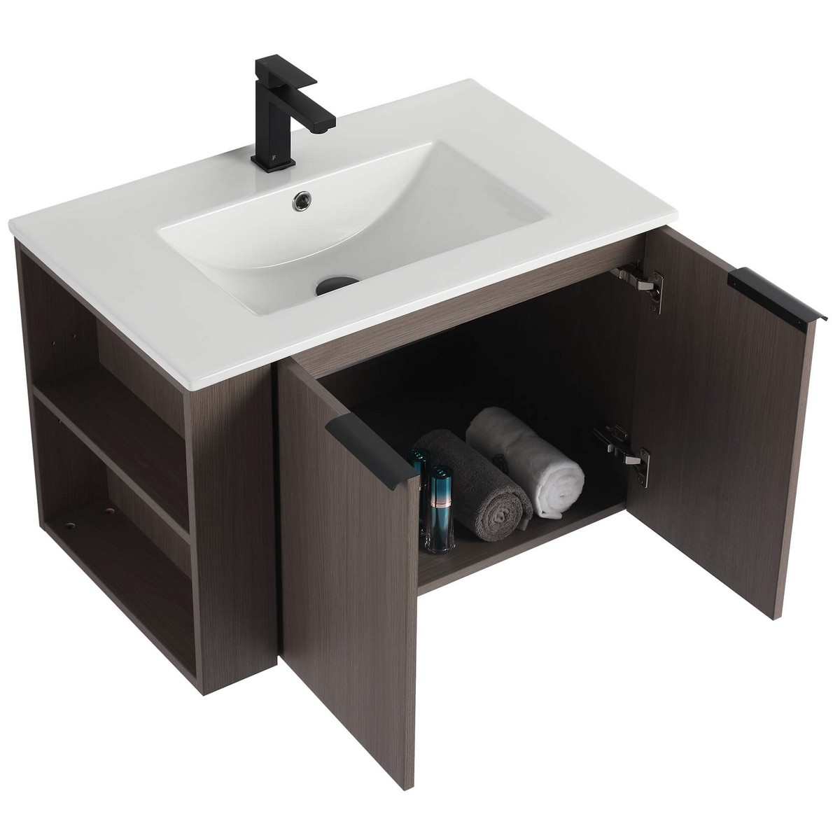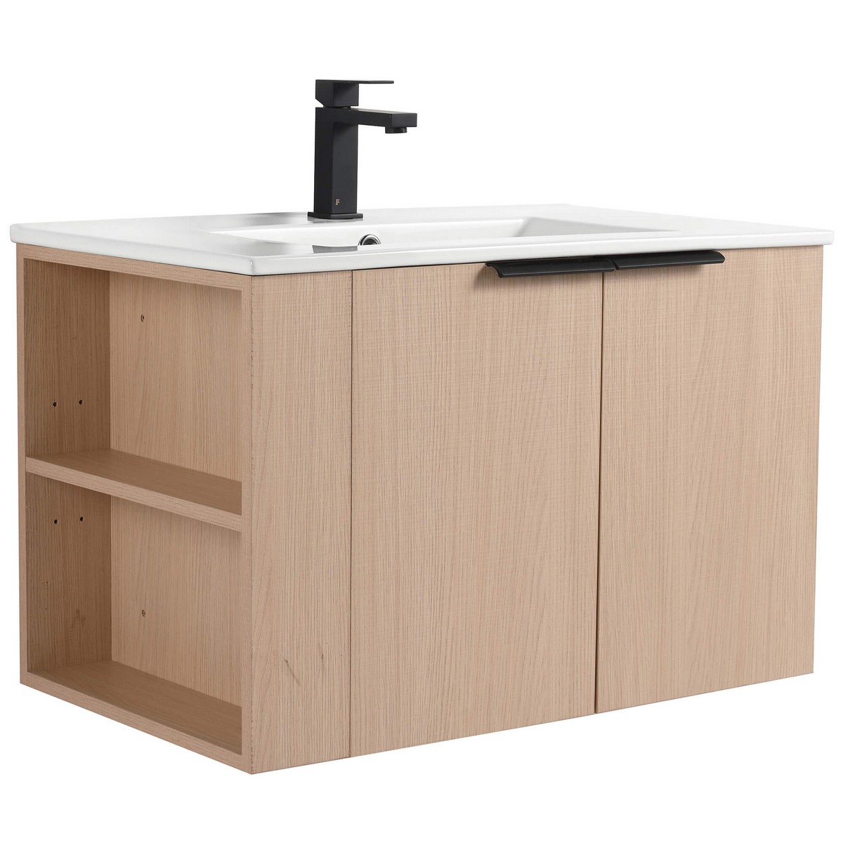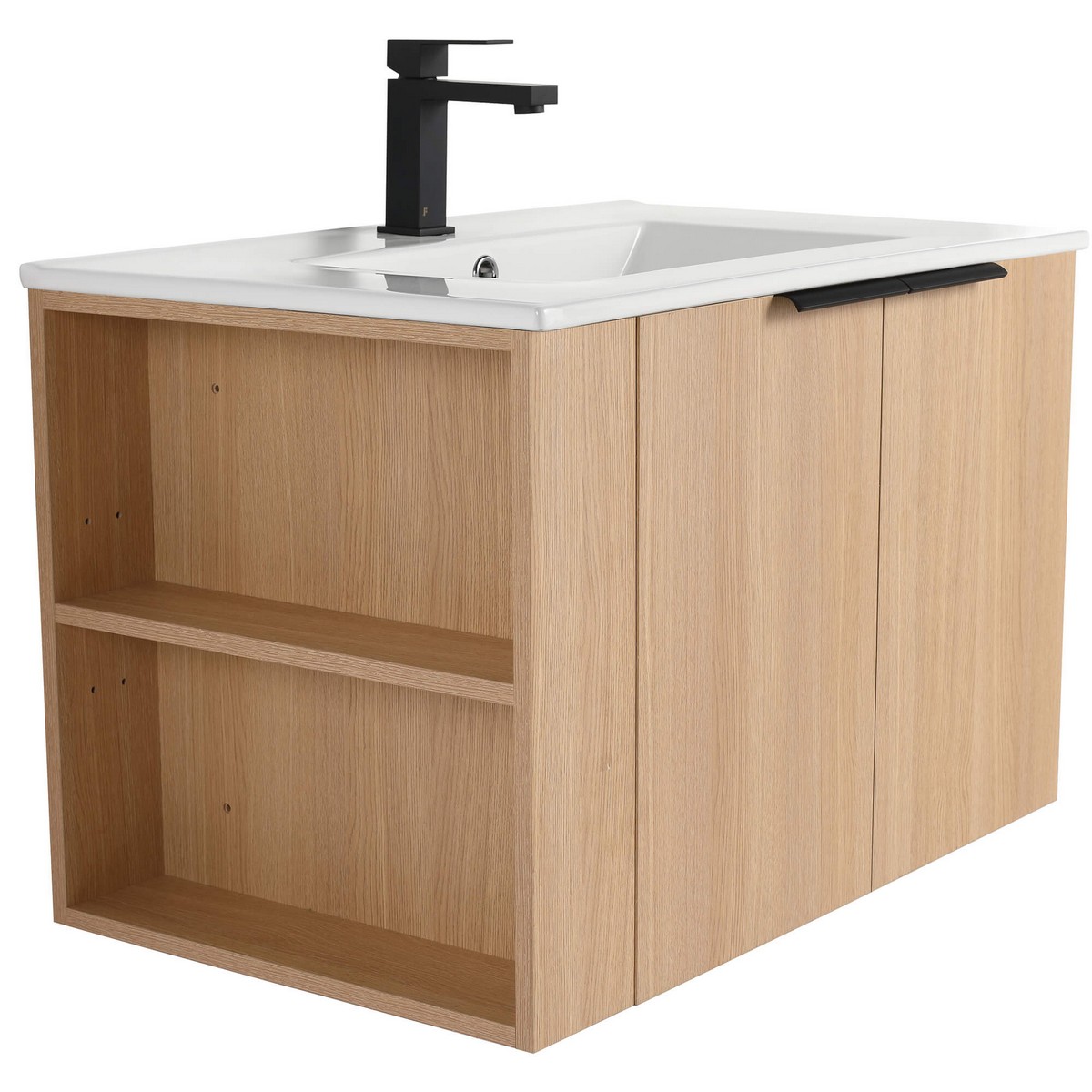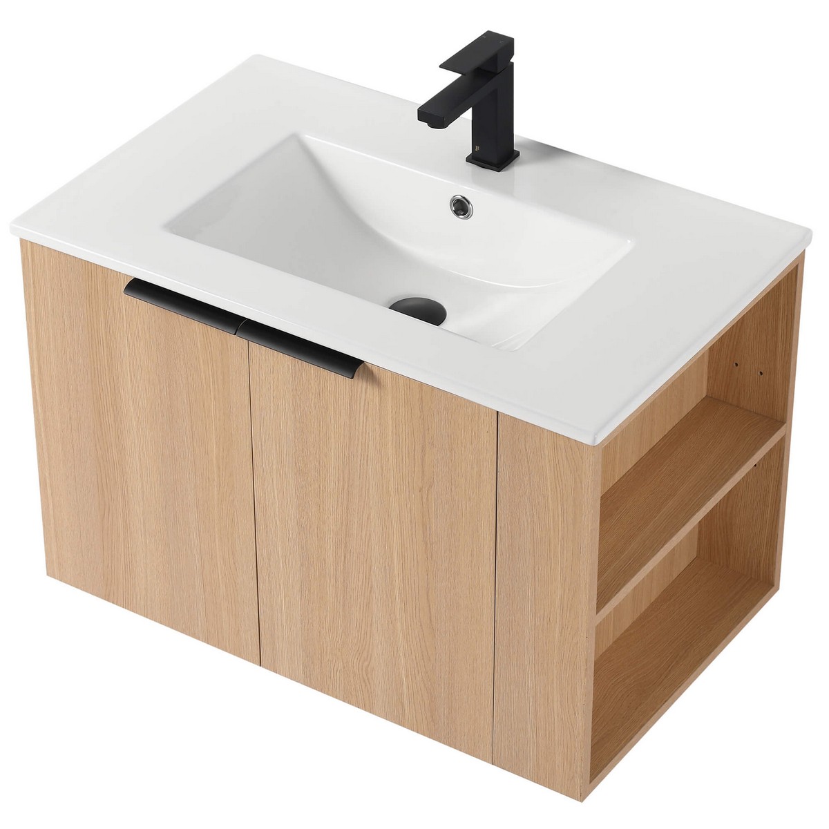 The ELMRIDGE vanity collection combines functionality with modern design, making it a perfect addition to any bathroom space. Featuring a compact design with a built-in storage cabinet and open shelving, this vanity offers ample space for organizing essentials. Its sleek design and thoughtful details are ideal for both small and large bathrooms, creating a streamlined and stylish look while maximizing storage options. The collection is designed with a focus on durability and ease of maintenance, making it a long-lasting and practical choice for your home.