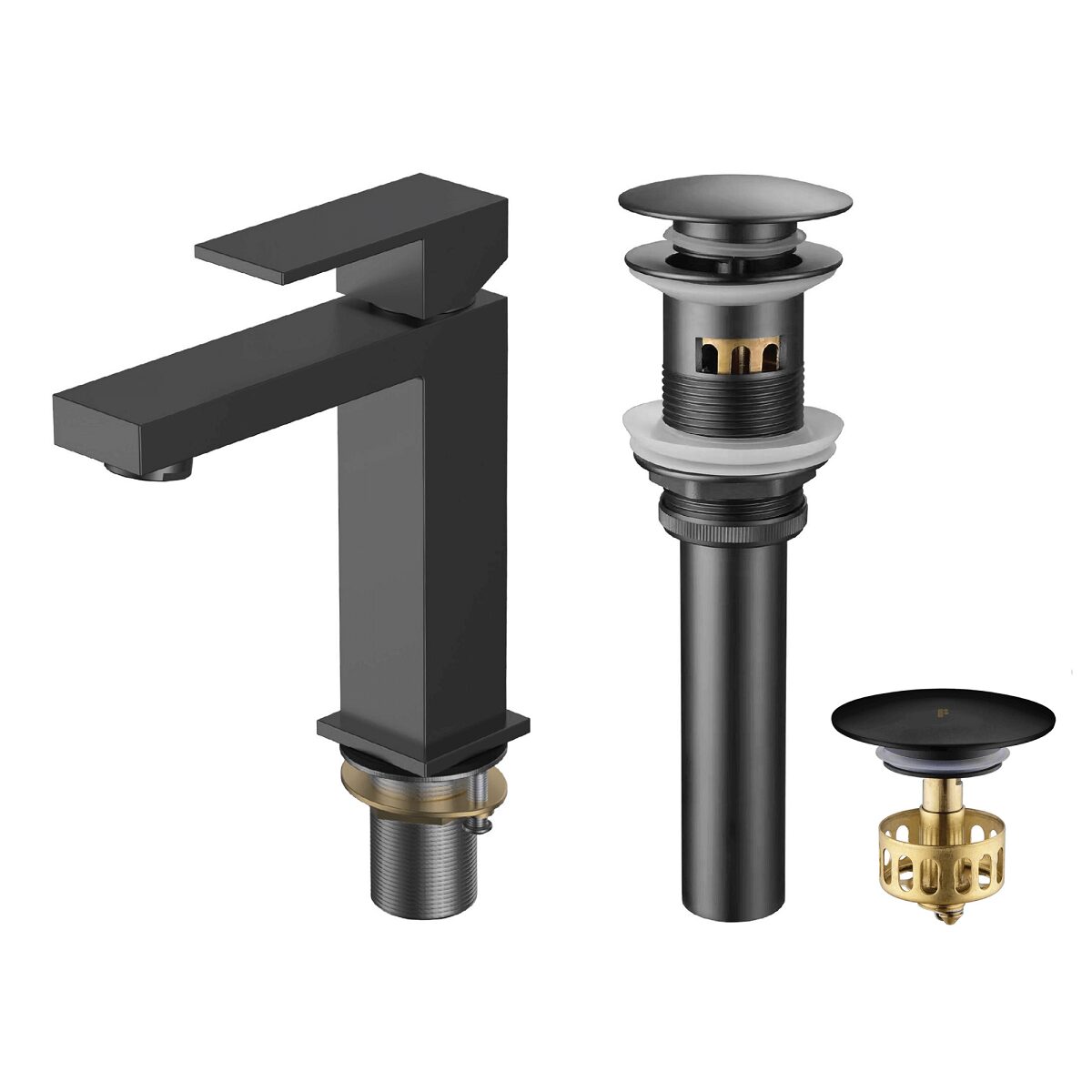 Overview: Fine Fixtures FAD3 6 1/2 Inch Single Lever Handle Square Bathroom Faucet with Pop-Up Drain