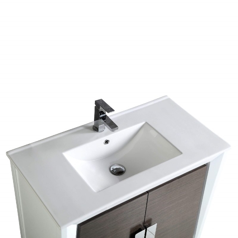Sometimes, even a minimalist requires an illusion beyond all the structural efficiency. Featuring a well outlined pyramid incline on its center front panel, Imperial 2 combines simple structure with recessed architecture. An explorative form of design within reach, the entire frame of the vanity continues throughout the leg column and features a double groove indent directly above the leg base. Roomy cabinet space is accessible via super durable polished chrome handle plates for the futuristic tinge in an otherwise understated presentation.