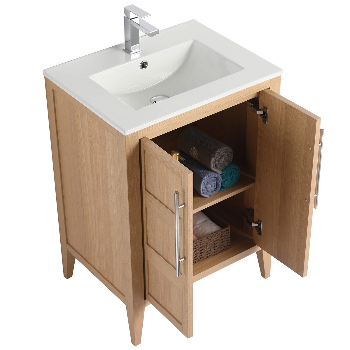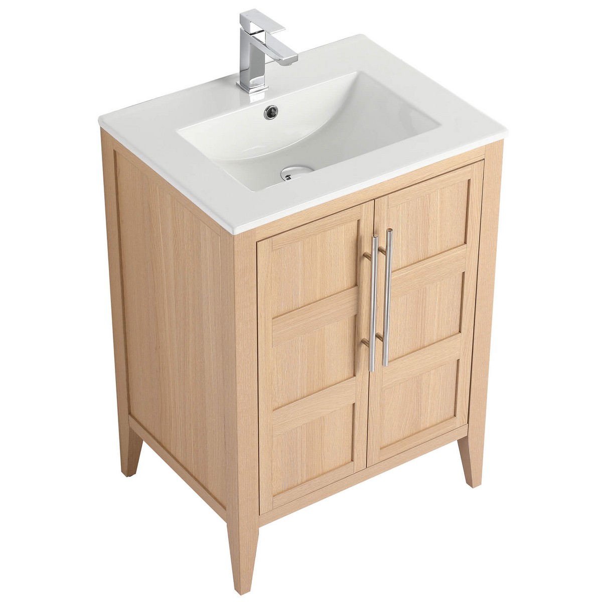 Fine Fixtures Leafside 24.125″ Free Standing Single Sink Bathroom Vanity Cabinet Only (Freestanding) – Sand Oak