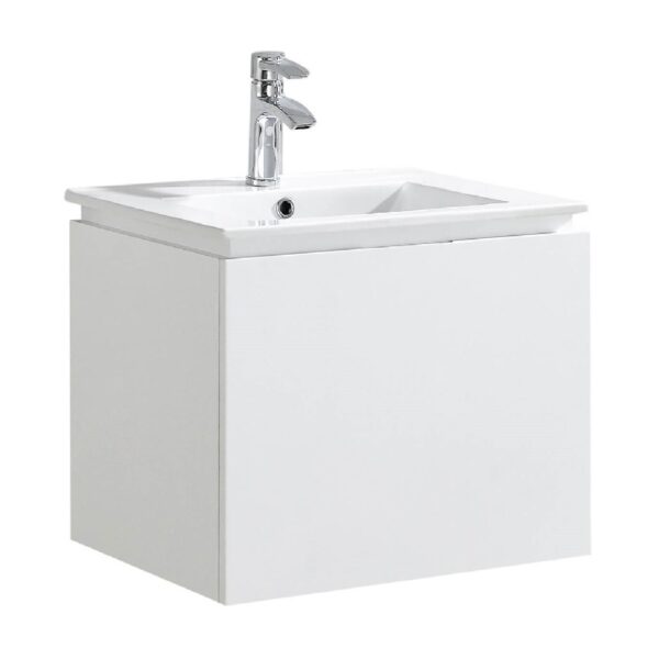 - Raised slim stone countertop and sink groove complete the minimal appearance