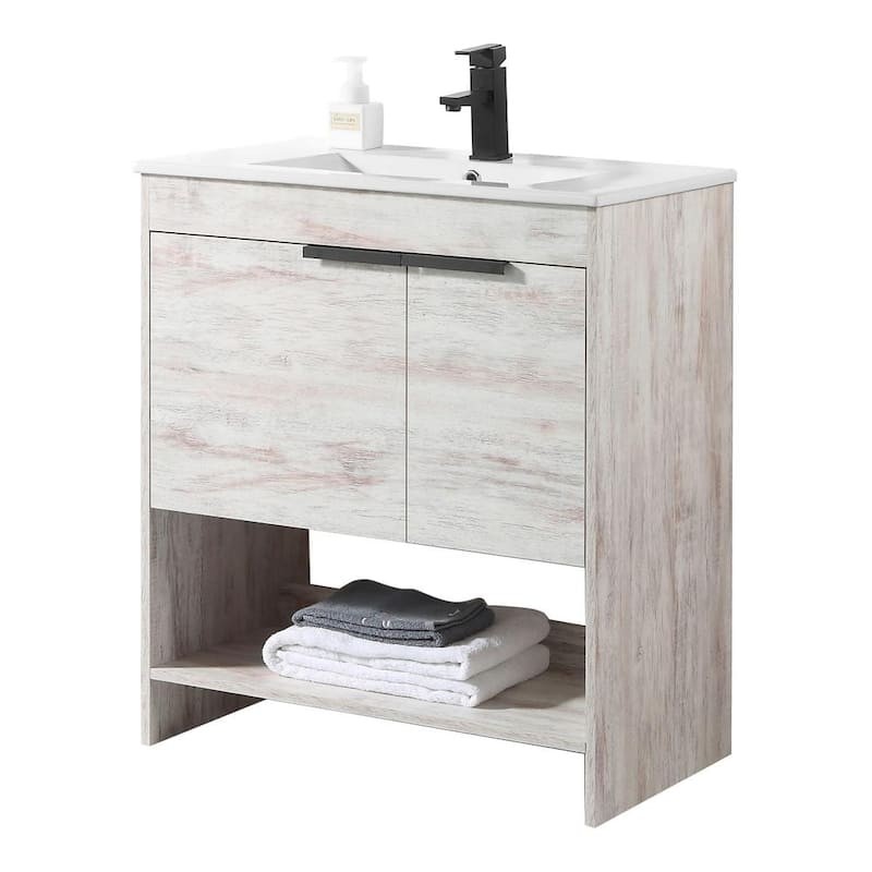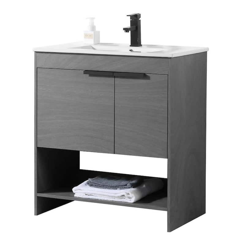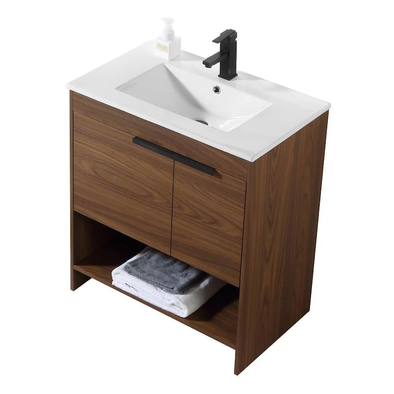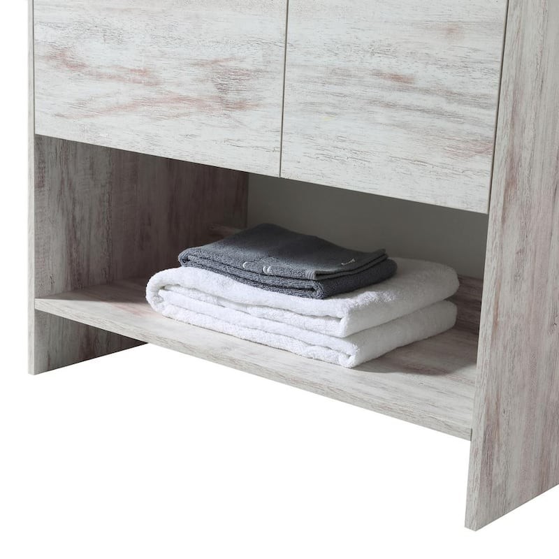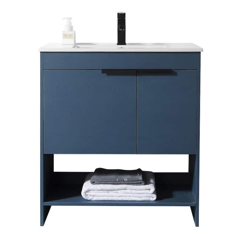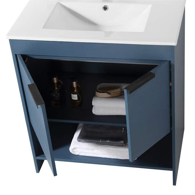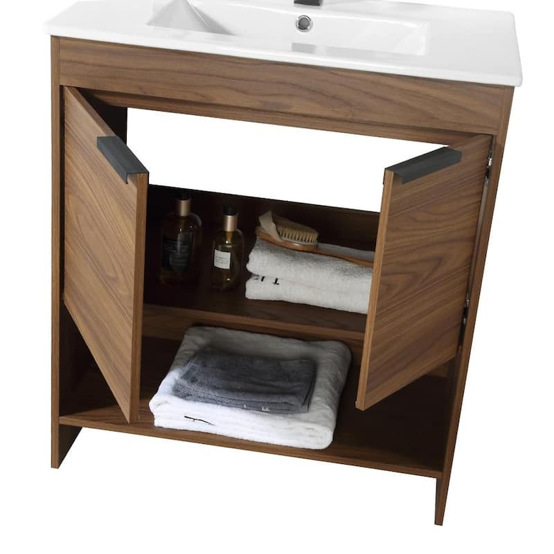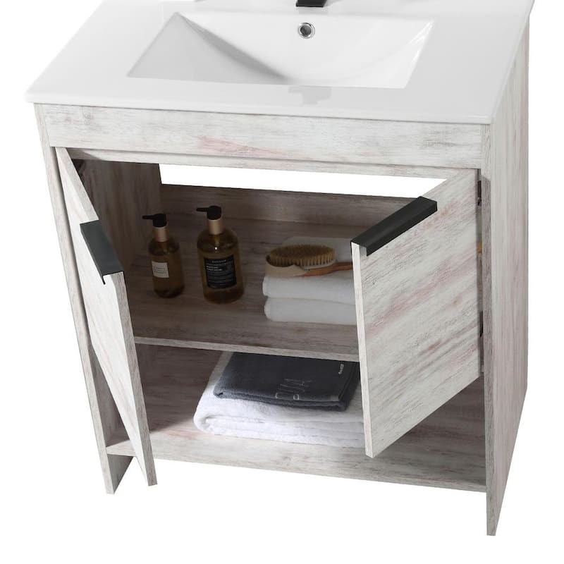- Spacious 2-door cabinets offer sufficient bathroom storage, in addition to that, the vanity offers an exposed shelf which is a great place to store your towels