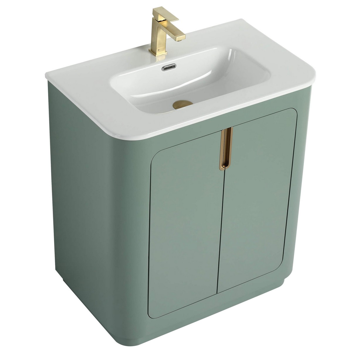 Introducing the’Shireplace Vanity Collection, where modern aesthetics meet exceptional practicality, designed to transform your bathroom into a stunning oasis. This remarkable vanity stands out with its sleek base design that harmonizes style and accessibility, offering a stylish appearance while enhancing functional ease. The elegant curvature of the edges adds sophistication, creating an inviting atmosphere that complements any decor. The innovative door design introduces an eye-catching element, demonstrating creativity and style, while the uniquely crafted handles add a contemporary flair. Finished in a luxurious sheen, the surface resists wear, maintaining its appeal with minimal upkeep. Featuring a soft-close mechanism, this vanity promotes a tranquil environment by ensuring quiet operation. Generous interior storage accommodates all your essentials, while thoughtful design elements prioritize family safety. Expertly constructed from premium materials, the Shireplace collection promises lasting quality and serves as a focal point, effortlessly enhancing both modern and traditional bathroom spaces.
