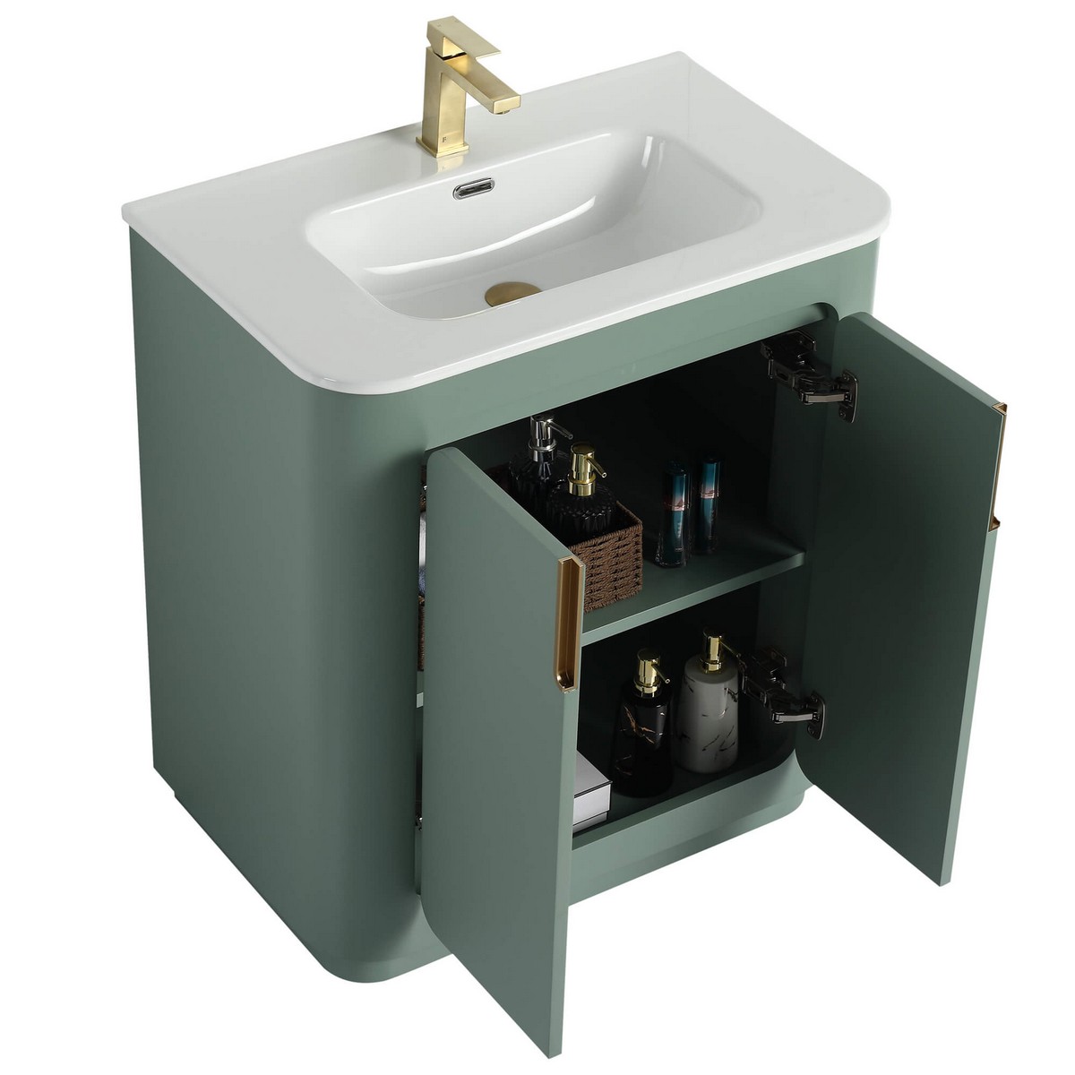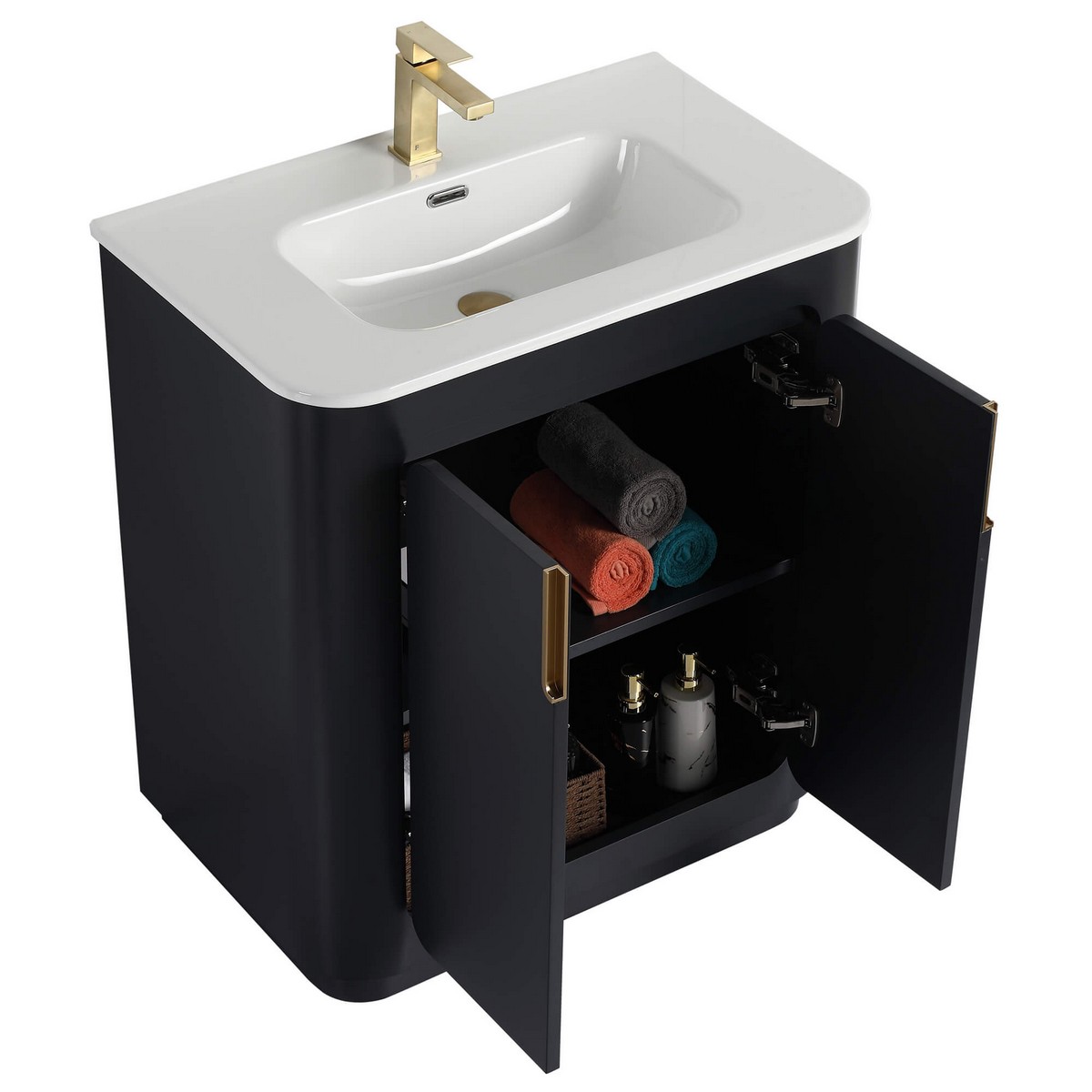 • The gracefully curved edges enhance the vanity’s design, introducing a refined touch to any bathroom decor