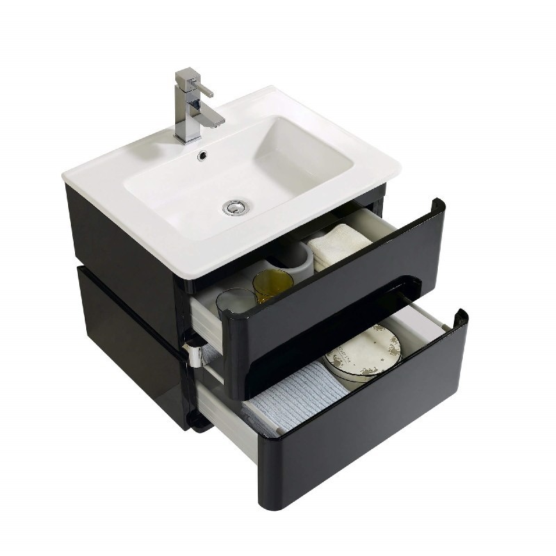 Fine Fixtures Sundance 23.625″ Wall Mount Single Bath Vanity, Black High Gloss