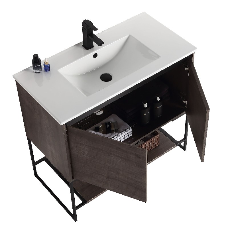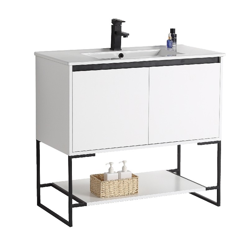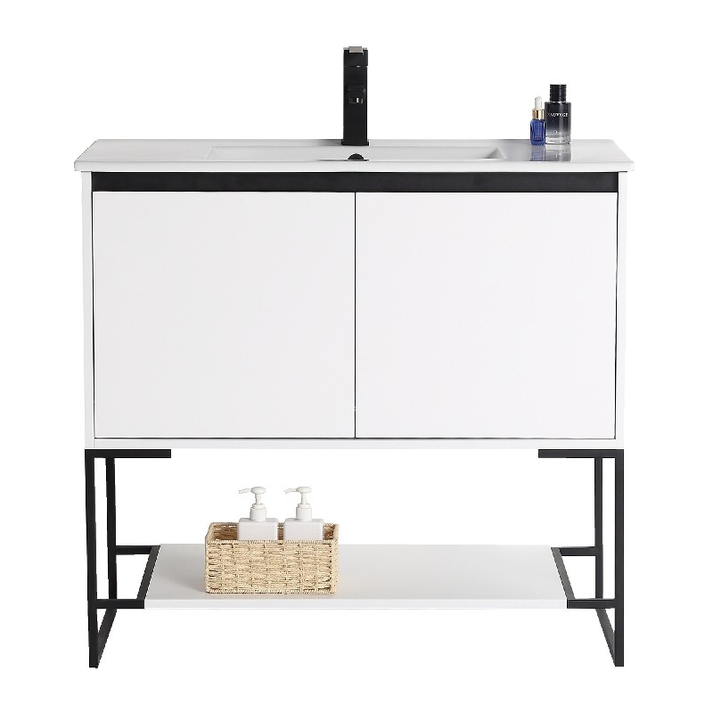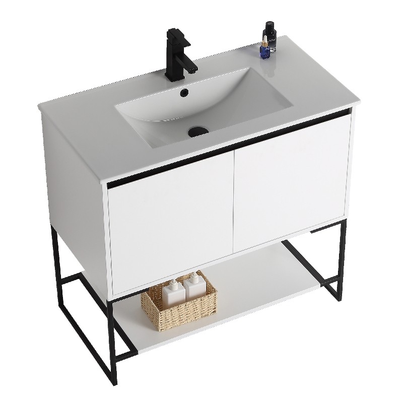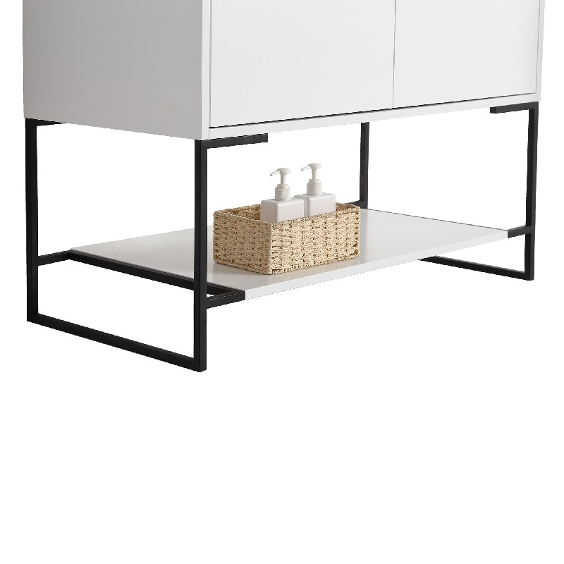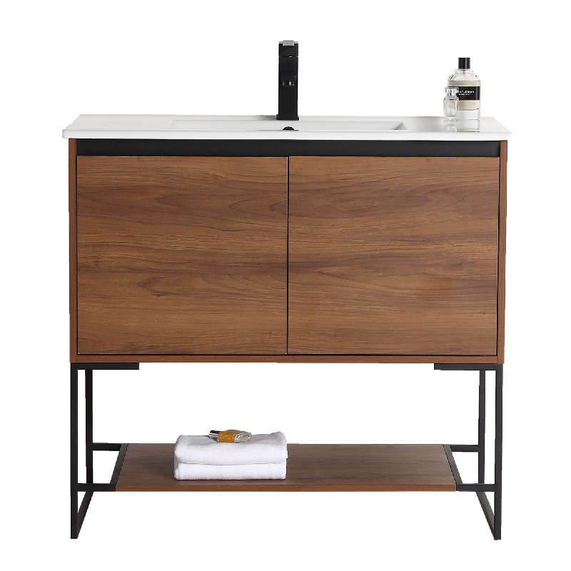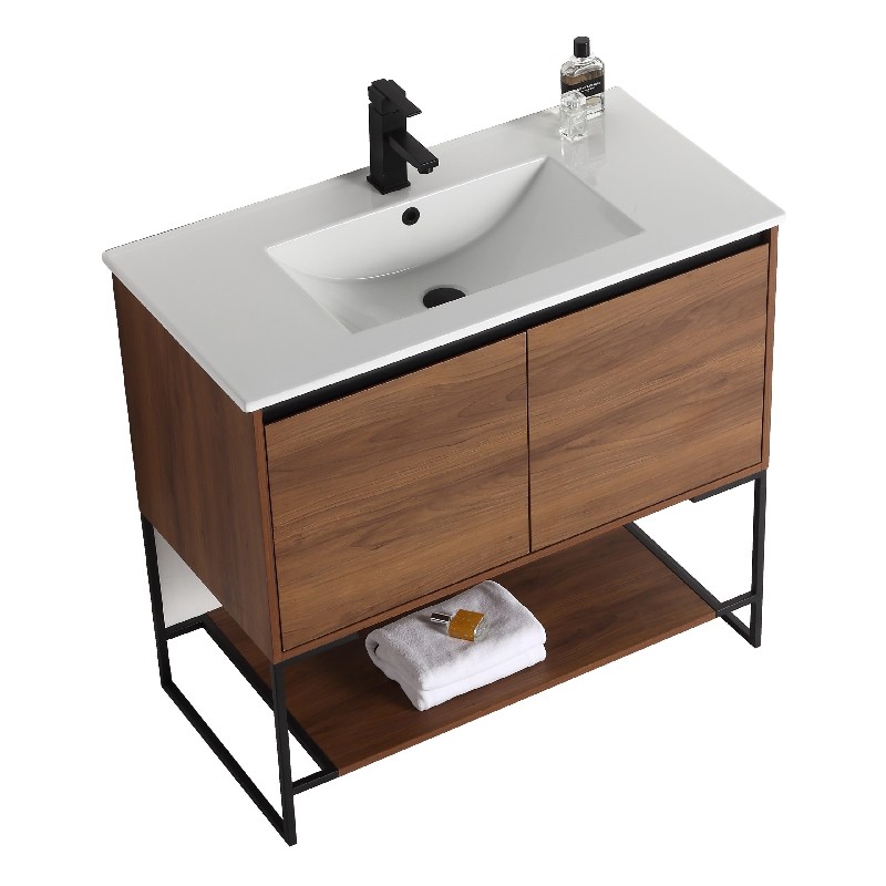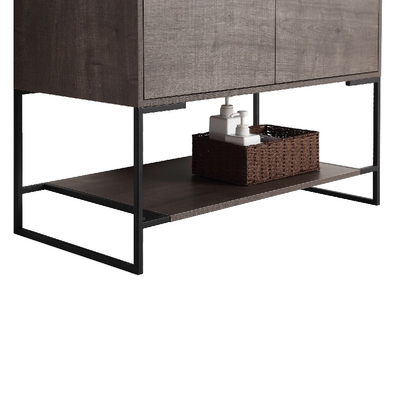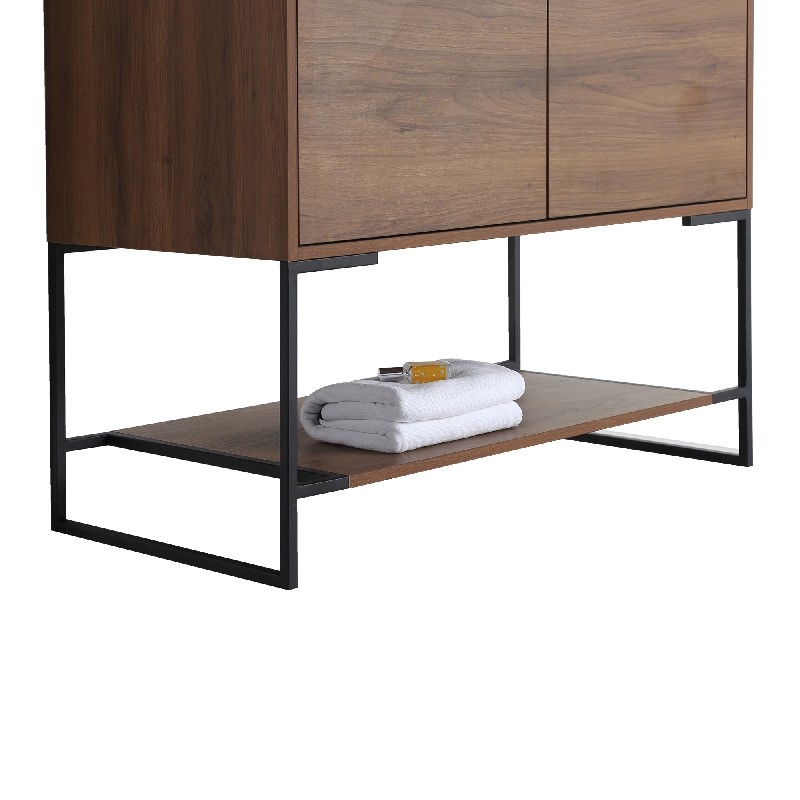 The finest of all our fixtures, the Urbania II Collection is our flagship model newly unveiled in anticipation of the 2020 spring season. It introduces an exceptional presence in your home or corporate space. True to its name, this contemporary yet timeless design looks marvelous in spaces both urban and suburban. Choose from three gorgeous colors: White Matte Finished in melamine, White Matte is bright and open, and beautifully contrasts the black frame for stark effect, Walnut color crafted with an upscale variety of fine real wood, Sleek Walnut adds a luxurious dynamic with a visible grain, Dark Gray Current and captivating, Dark Gray features a premium plywood with melamine finish, with the wood grain elegantly showing through. With its open look and shelf on the bottom, Urbania looks great in any setting. It is constructed of durable plywood material, the wide Two door vanity offers ample storage space.
