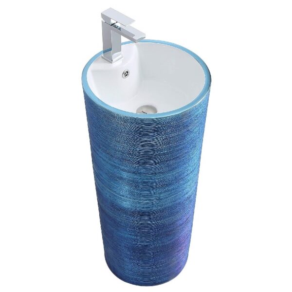 Elegance takes on a new dimension with the Vennes pedestal sink. Ideal for dining room entrances, wash areas and hallway enclosures, its unique design is that of an accent piece that makes a statement. Eliminating the storage aspect of the traditional vanity, the Vannes pedestal sink is a cone shaped base resembling a spool of silvery threads. Brilliantly crafted and appealing to all areas, its iridescent veneer is available in silver grey, brushed bronze and brushed blue. Interwoven threads are what gives this pedestal some serious glam, while being a timeless accent piece for your home.
