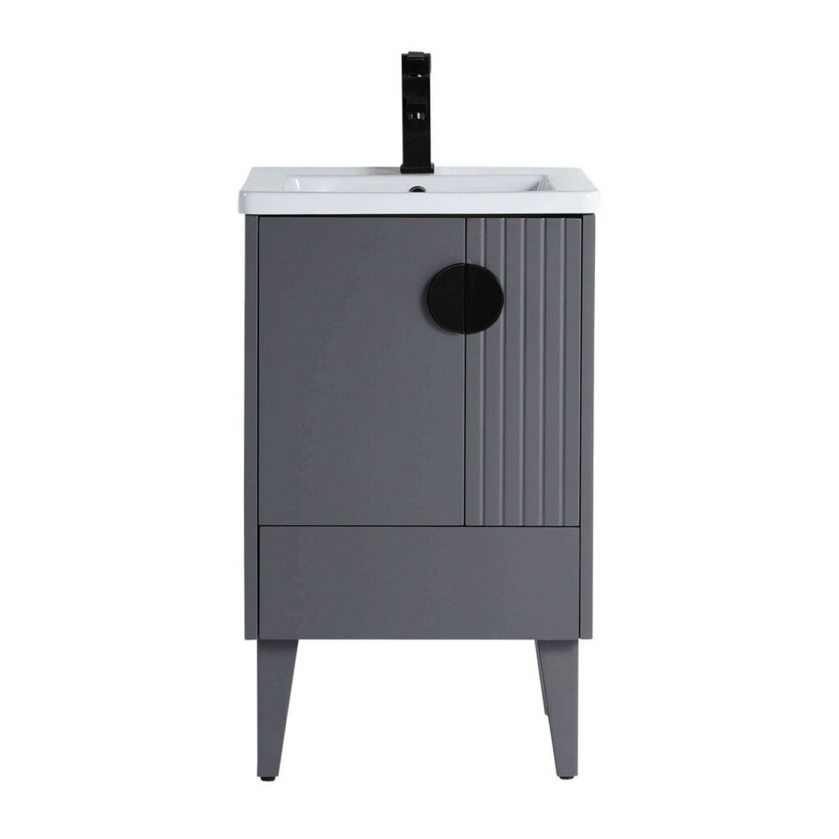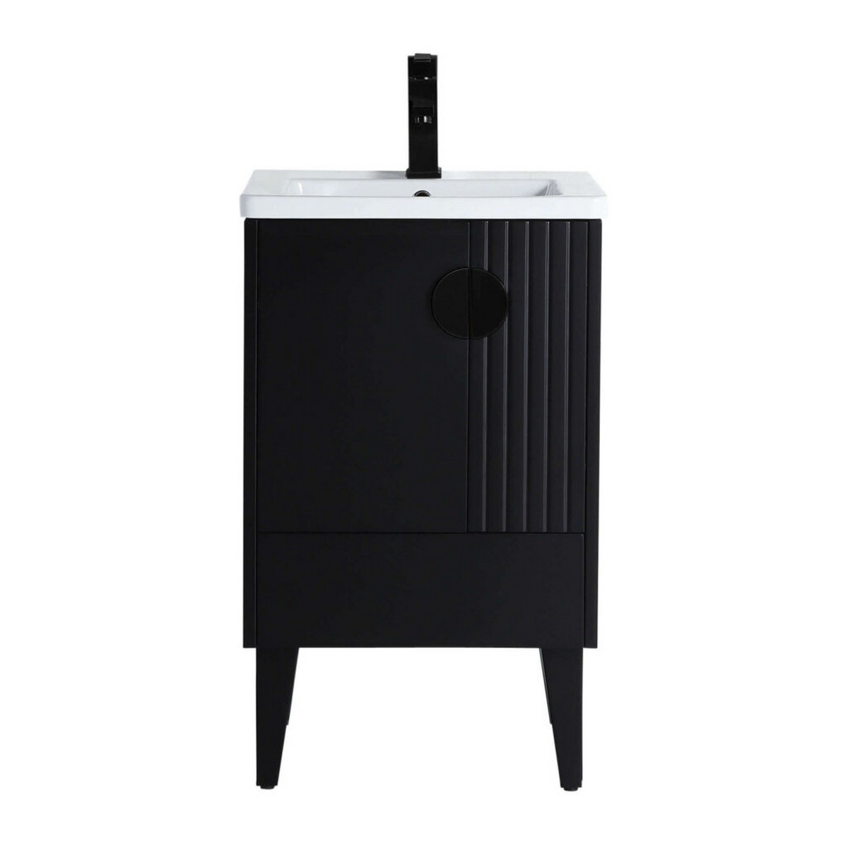 A timeless classic, Venezian merges some of Italy’s most glamorous designs with modern trends and architectural updates. Sitting pretty on cone-shaped legs, its squared-in design features an off-center cabinet display, with linear strips in a vertical formation. Modern art in all its glory, Venezian surpasses the ordinary expectations in bathroom vanity performance, brilliantly merging functionality with geometric outlines and a split circular metal opening. Conforms to all transitional, traditional and modern design plans.